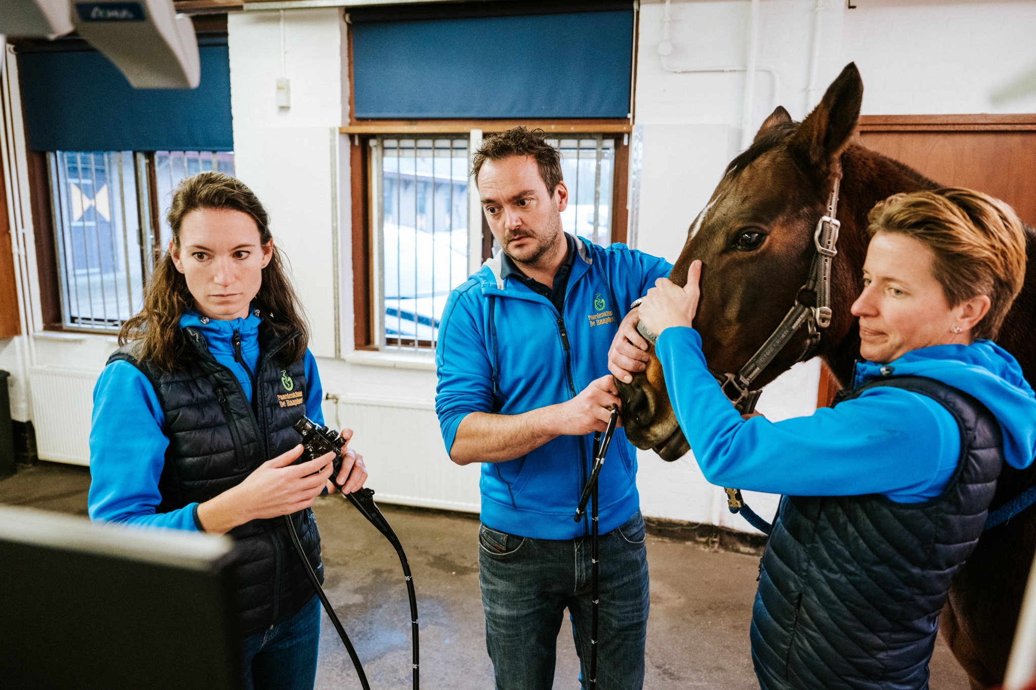 Bij een maagscopie wordt er via de neus van het paard een slang met een camera naar binnen gebracht. Deze brengen we via de keel en de slokdarm in de maag. Vervolgens wordt de maag opgepompt met lucht om de maagwand goed te kunnen zien en beoordelen. Om goed zicht te hebben in de maag is het belangrijk dat de paarden één nacht gevast hebben. Normaal gesproken zijn er te veel voedselresten aanwezig in de maag, die belemmeren het zicht. In de maag kunnen we uitgebreid kijken naar de maagwand en bij niet al te grote paarden is het zelfs mogelijk een blik te werpen in het eerste stukje van de dunne darm.